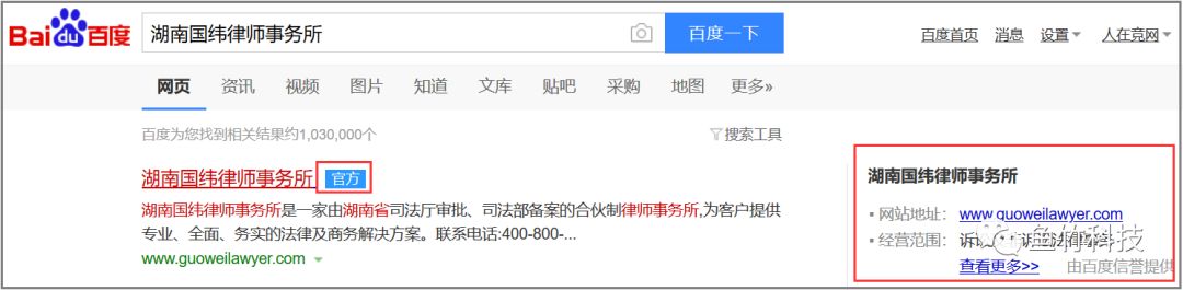 好處:通過百度官方認(rèn)證區(qū)別行業(yè)信息,并可強(qiáng)制提升排名;